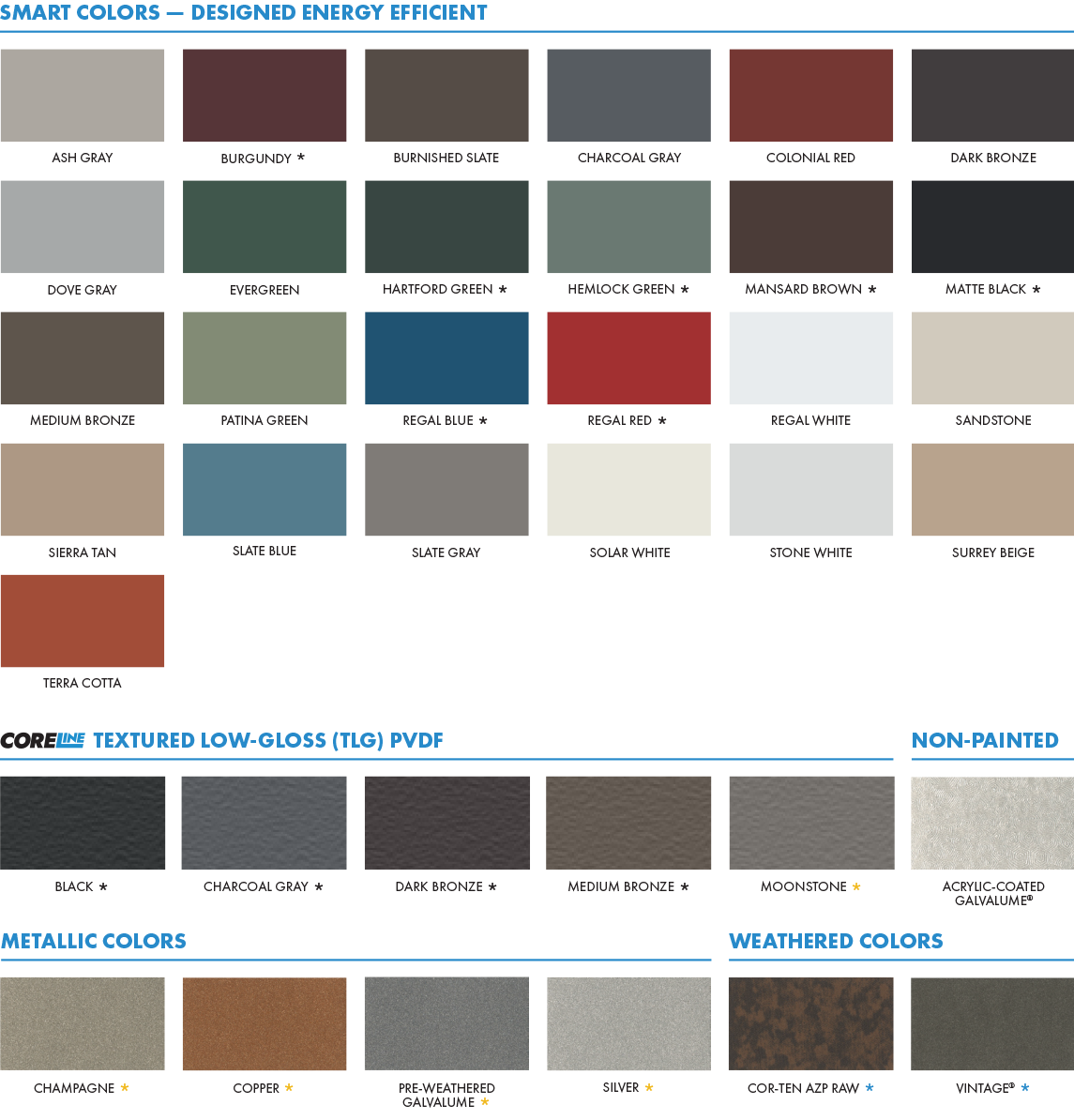 | Finishes | Bare (Mill Finish) Stucco Embossed, Painted (Any color subject to code) |